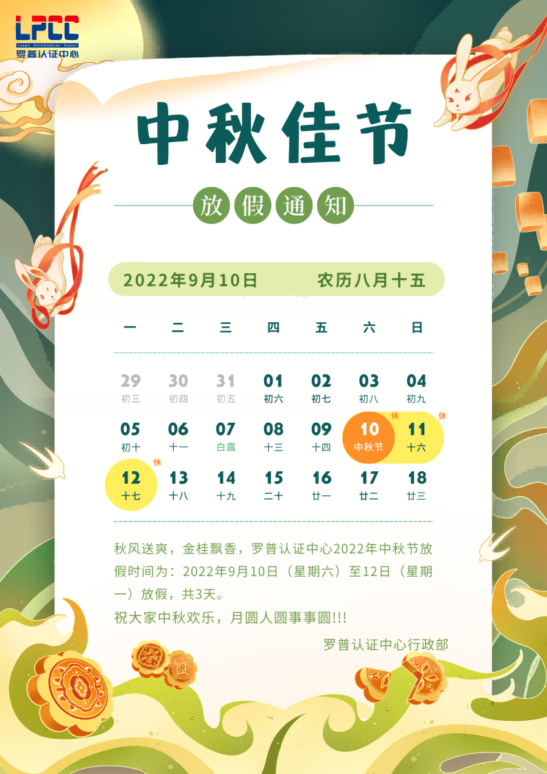 中秋節放假通知